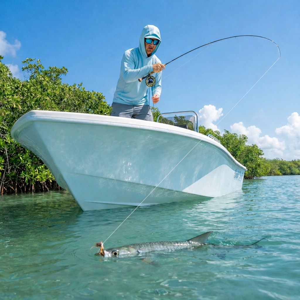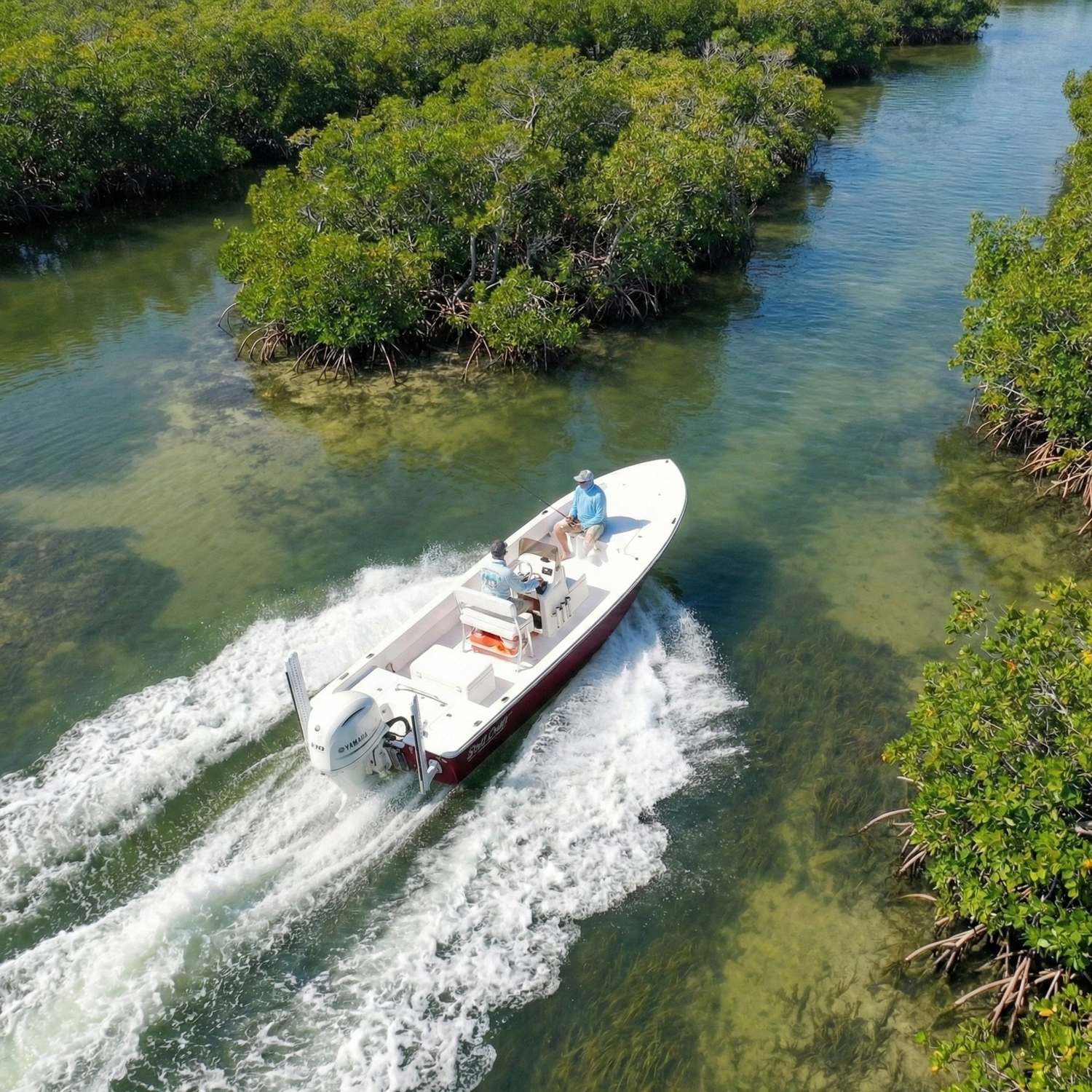 The mangrove assassin – A nimble 17-footer built for dialed-in fishing days and easygoing sunset cruises. Simple, capable, and ready whenever you are.
